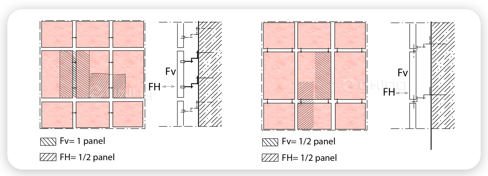 Yük taşıyan duvarlara genleşme cıvatalarıyla ve kanallara ayar vidalarıyla sabitlenir