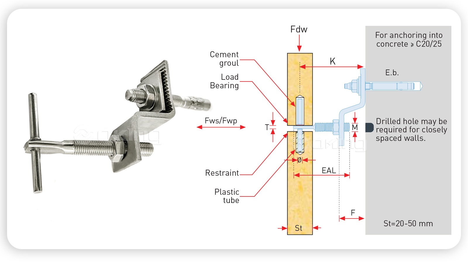 Cıvata ankrajları için uygulama örnekleri Ankrajlar, yük taşıyan duvarlara genleşme cıvataları ile sabitlenir.